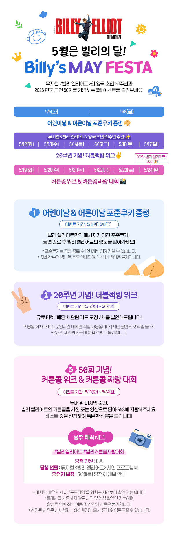 영국 초연 20주년과 2026 한국 공연 50회를 기념하는 5월 이벤트를 즐겨보세요!