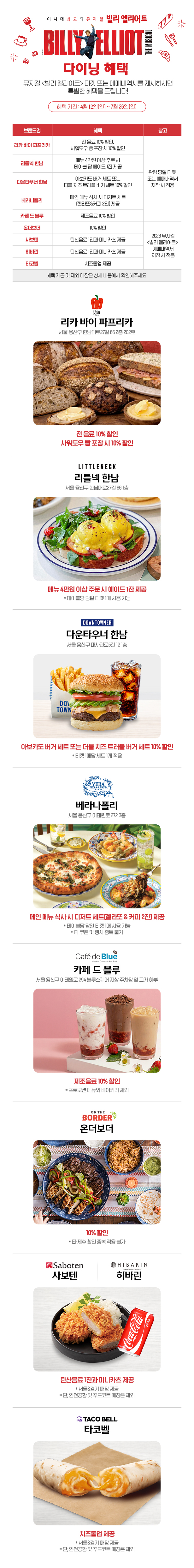 뮤지컬 <빌리 엘리어트> 티켓 또는 예매내역서를 제시하시면 특별한 혜택을 드립니다!